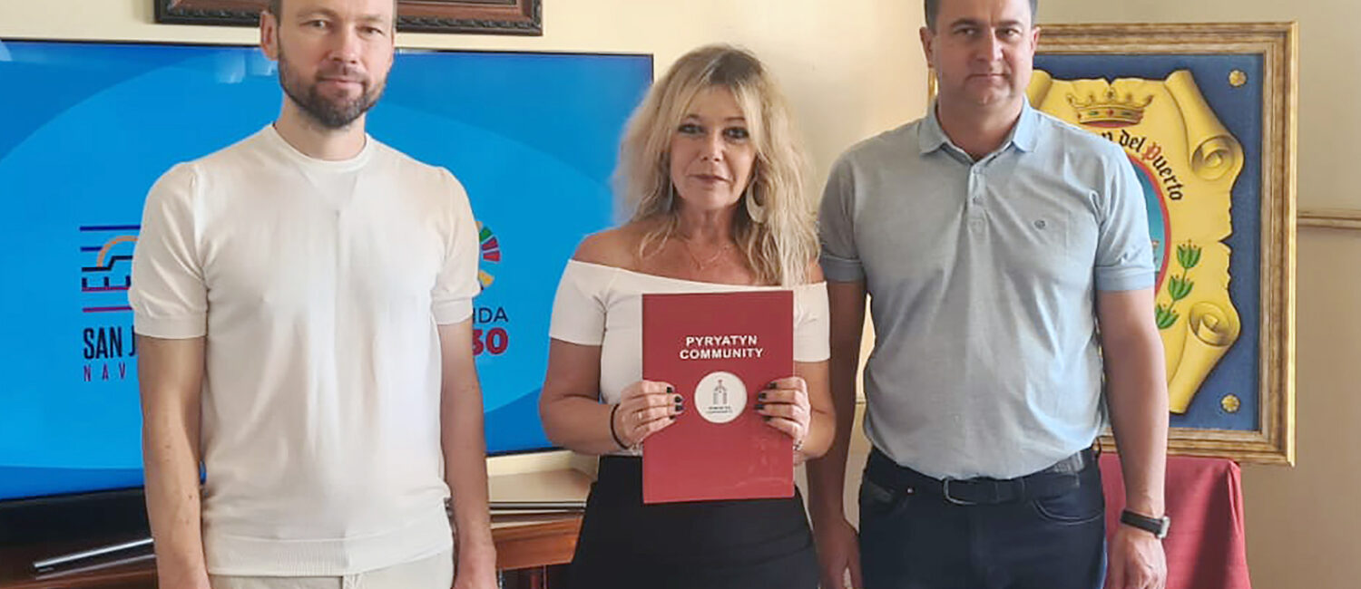 La delegación estuvo encabezada por Andrii Simonov, alcalde de la comunidad territorial de Pyriatyn, y Vitaly Birk, primer edil de Ratne (Volyn), junto con representantes de Mayor Plus, la federación ucraniana de municipios. Durante el encuentro, la alcaldesa subrayó la importancia de la cooperación municipal “con este encuentro estrechamos la cooperación y el intercambio de experiencias locales, aportando desde San Juan del Puerto nuestro conocimiento para contribuir al desarrollo de sus territorios”.